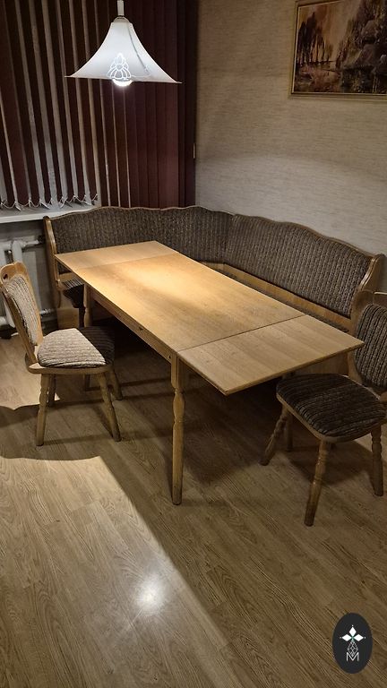 Virtuves iekārta, bāra lete ar plauktu un četriem augstajiem krēsliem. Ir iespējams arī iegādāties atsevišķi. Tādā gadījumā par cenu vienošanās atsevišķi.