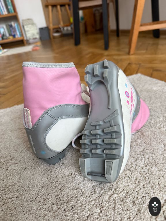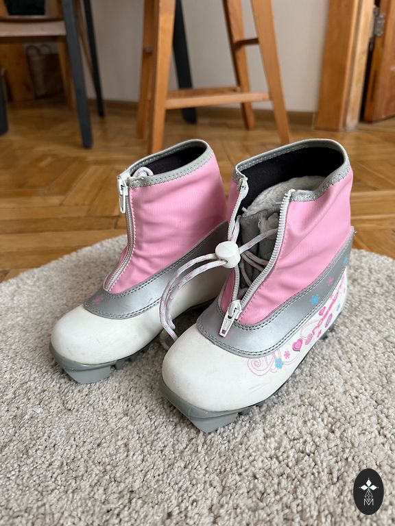Детский комплект для лыжных гонок в хорошем состоянии. Крепления SNS. Лыжи 110 см, палки 100 см. Размер ботинок 31, стелька 19,3 см. Находится в Пурвциемсе.