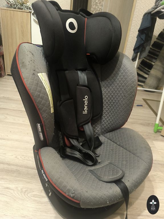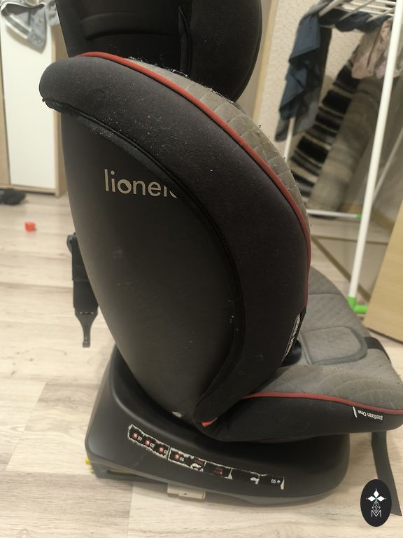 Sėdynė tvirtinama tiek isofix, tiek diržais. Sukasi į visas puses.