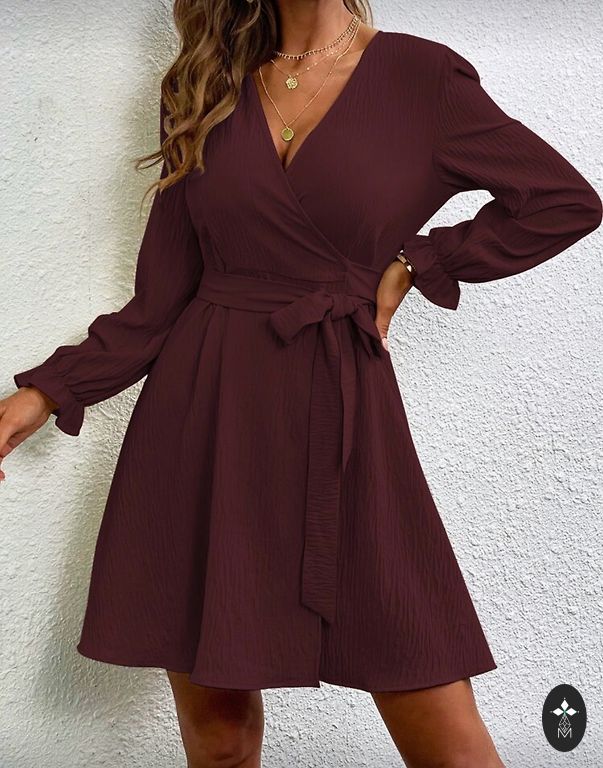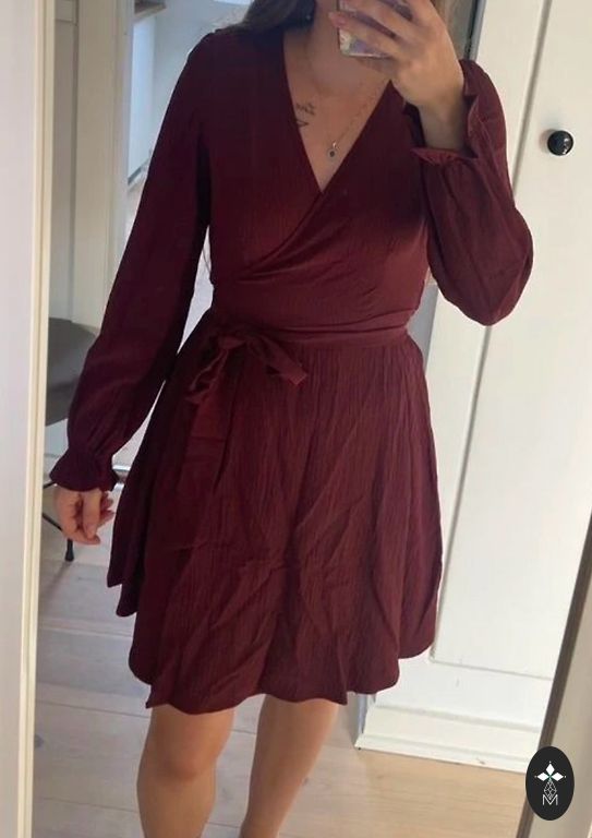 Elegantne kleit, millel on lahtine ülaosa ja kokku tõmmatud vöökoht. 3/4 varrukad, langev kangas, mugav ja figuurile meelitav.