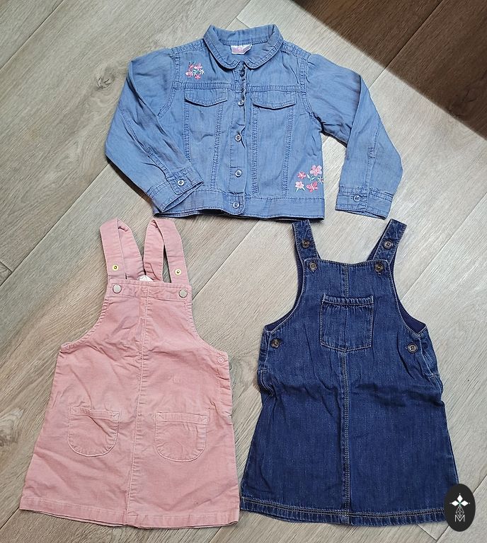Rinkinys 56 dydžiui. Pavadinkite tai storesnę, šiltesnę striukę su užtrauktuku ir kelnes. Rekomenduočiau nuo 56 dydžio. Taip pat Zara geltonas rinkinys tiks nuo 56 dydžio. Name it ir Mini rodini megztiniai bei plonos Lindex kelnės, galima dėvėti nuo 56 dydžio. +siuntimas