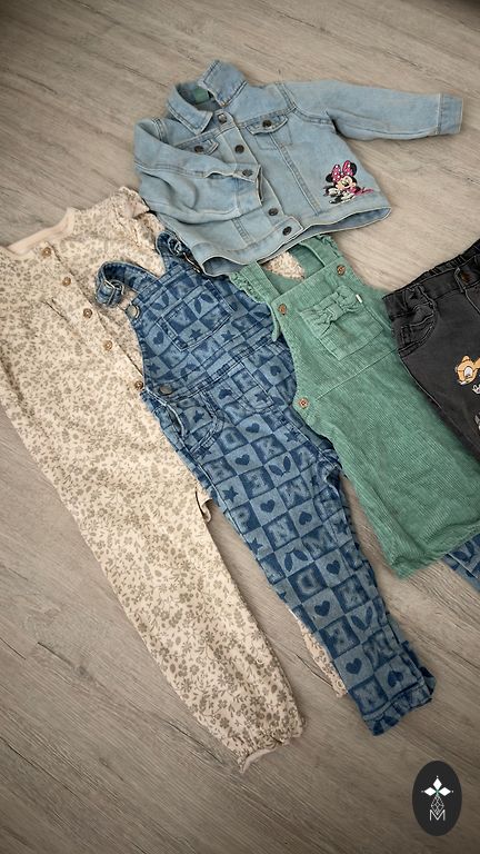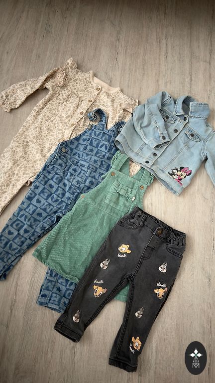 Viskas idealios sąlygos, 1-2 kartus dėvėta. Kelnės naujos su pašiltinimu. Džinsinis suknelė su mikimauzais pirkta Anglijoje.