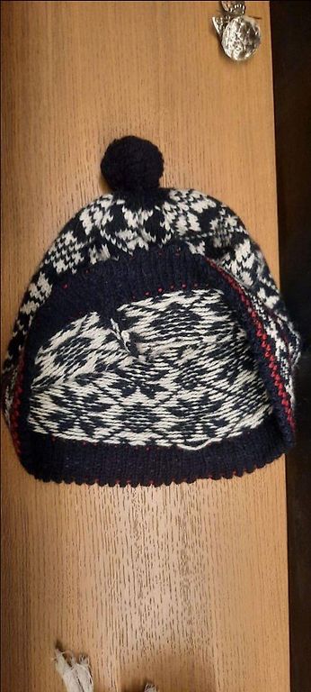 Tume roosa 2x kantud müts, mis on siiski liiga kitsas. Sobib pea jaoks, mis on kitsam kui 58 cm ümbermõõt kõrvade ja kulmude kohal. Koostis: 30% vill, akrüül (70%); vooder 100% polüester.
