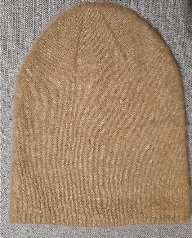 Moteriška audinės kepurė su pamušalu, aukštis 25 cm, apskritimas 59 cm.