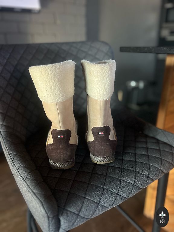 Vieną kartą užsidėti, tačiau, deja, per dideli, 41 dydis. Sniego batai iš natūralios odos.