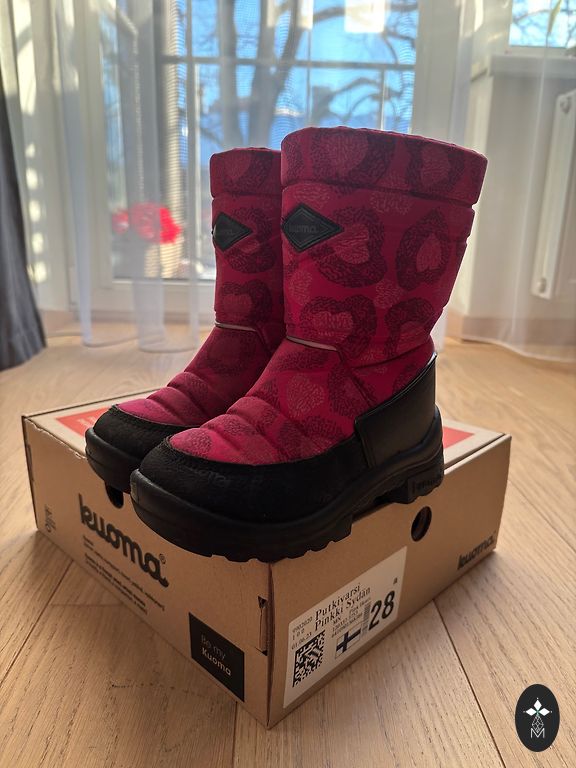 Saapad heas seisukorras. Kantud 2 kuud, lapsel jalg kasvas. Võtsin suuruse 27 ja kandsime sooja sokiga.