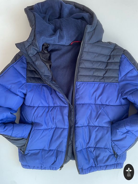 Kantud jope, normaals seisund. Defekt on näha pildil. Logo tagaküljel tuleb mõlemalt poolt lahti. Saab õmmelda. Pestud õigesti.