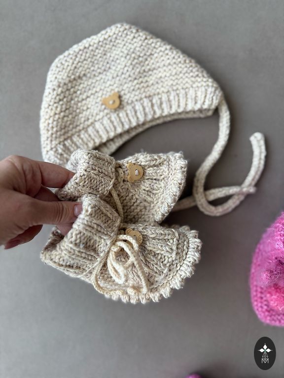 Очень удобный и красивый комплект из хлопка для возраста от 6 до 9 месяцев, можно также на меньший размер. К комплекту добавлю красивые туфельки для фотосессий.