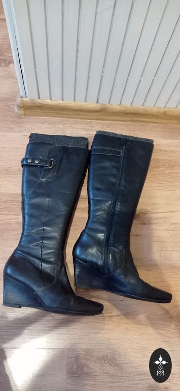 Puikūs batai! Natūrali oda maišyta su sintetiniu medžiagu. 39 dydis. Avėti 3-4 kartus. Dėl storų padų net esant dideliam minusui kojos nešąla, batai nuo pėdos iki kulkšnies turi nedidelį apšiltinimą. Drąsiai klauskite išmatavimų, papildomų nuotraukų. Siunčiu per paštomatus/gali atsiimti pas mane Imantoje.