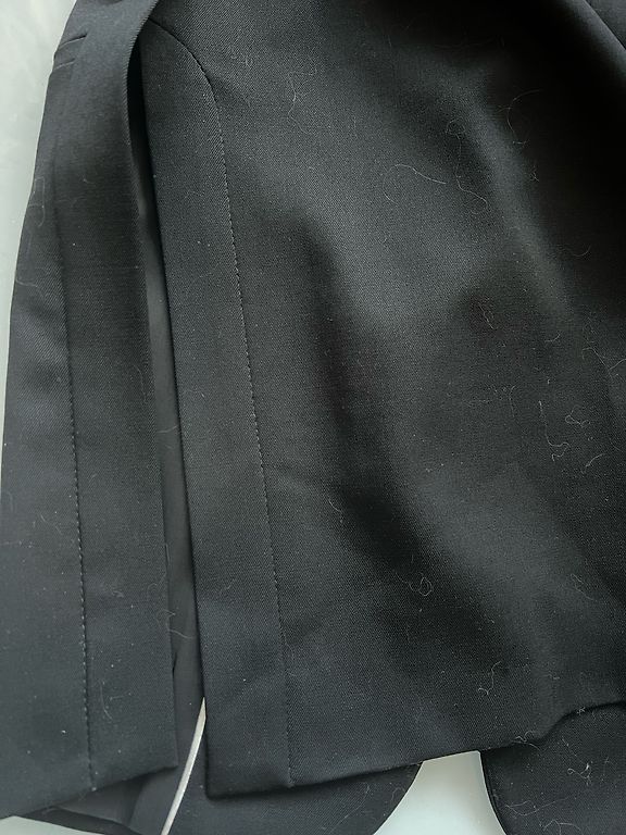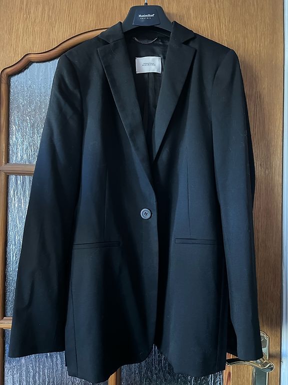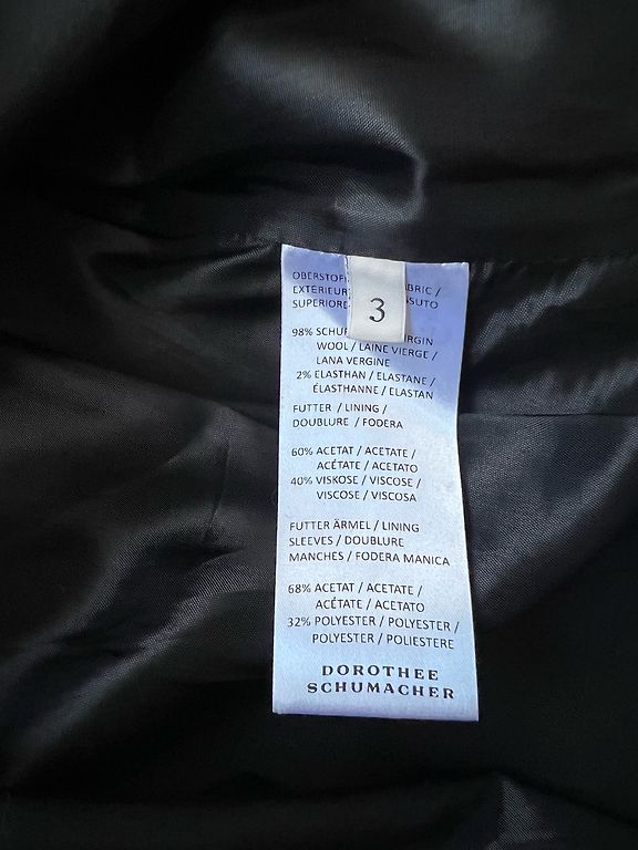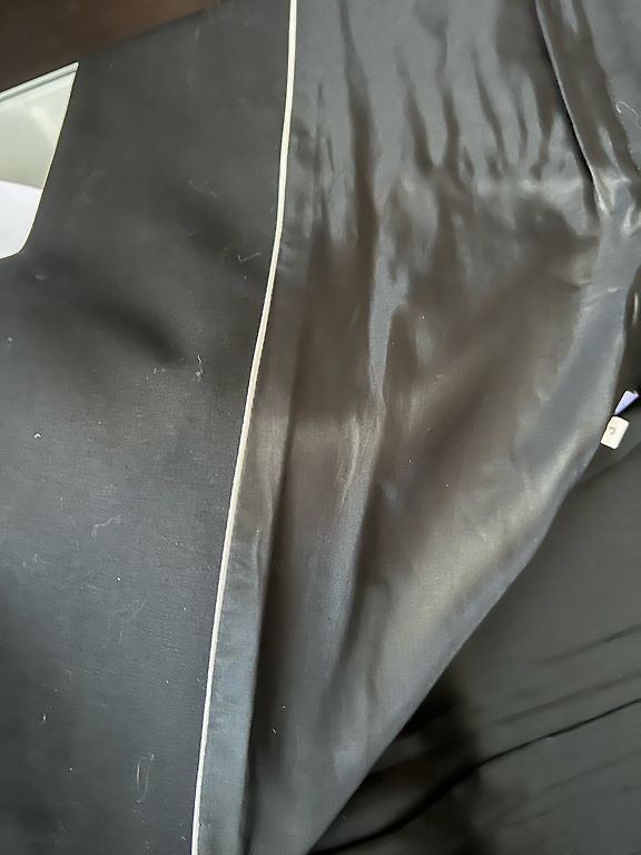 Mazliet spidīga auduma (30 %- poliester, 67 %-viskoze) žakete, 3/4 piedurknes garums. Aiztaisāma uz vidukļa uz 2 āķīšiem un sasienama ar lenti. Krūtīs - 88 cm, garums - 55 cm, pedurknes -47 cm
