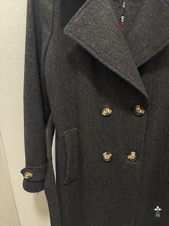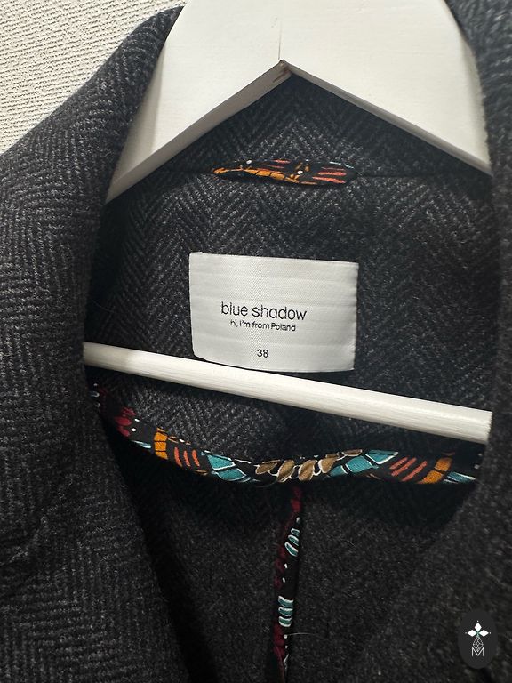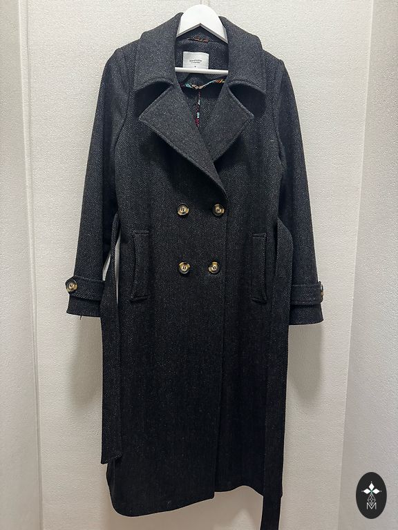 Lapės kailis, vilna ir žąsų pūkas. Pagaminta Korėjoje. Super šiltas. Dėvėtas penkis kartus, supratau, kad vis dėlto tai ne man. Modelis oversize, gražiai atrodo ant S, M ir L dydžių. Gobtuvas.