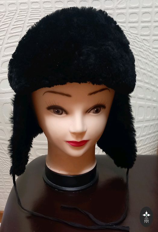 Mink fur hat for winter on a 57 cm head. With quilted lining, warm. Earflaps are sewn on, cannot be lowered.