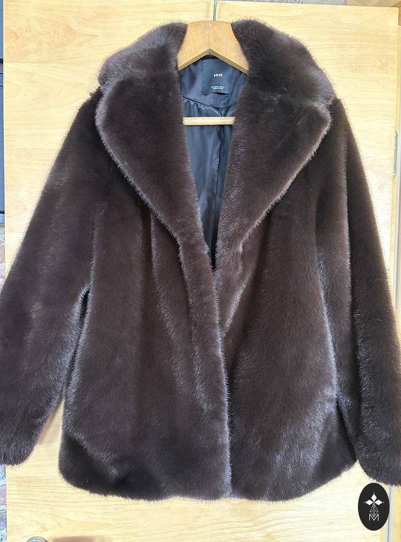 Pasiryžau parduoti savo šio sezono perlą, šokolado spalvos dirbtinio kailio striukę su gausiu pūku ir dideliu gobtuvu.