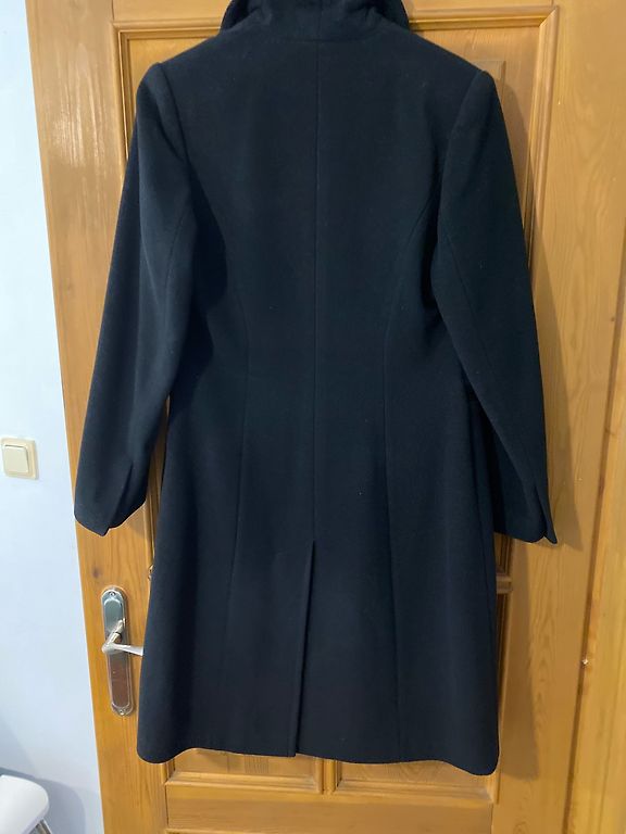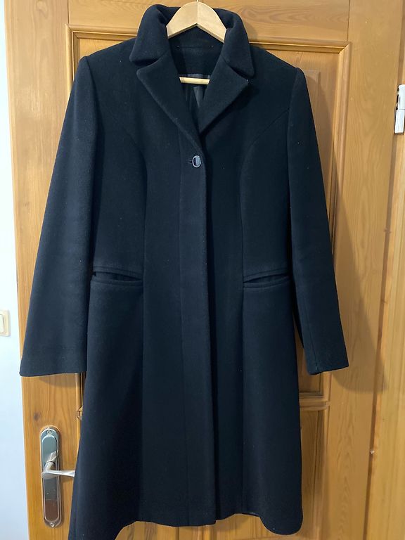 Vilnonis paltas, dėvėtas tik kelis kartus, nesusipažinau. Yra kūno formos, nuotraukoje nematyti, bet juosmuo šiek tiek siauresnis. 41% vilna.