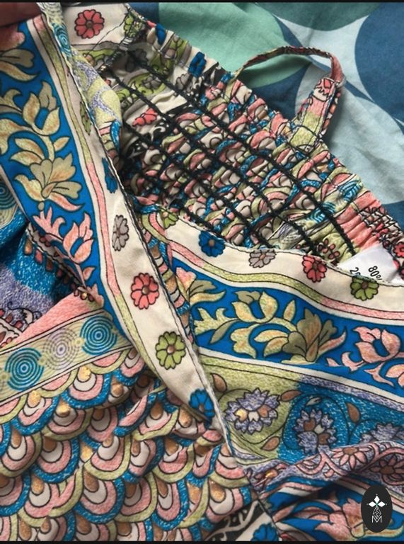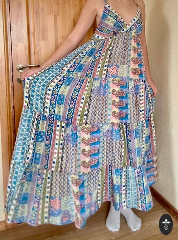 Pikkus seljal 119cm. Lühim koht 95cm. Kaenlaaluste vahe 120cm. Väga kerge ja õhuline, õhuke.