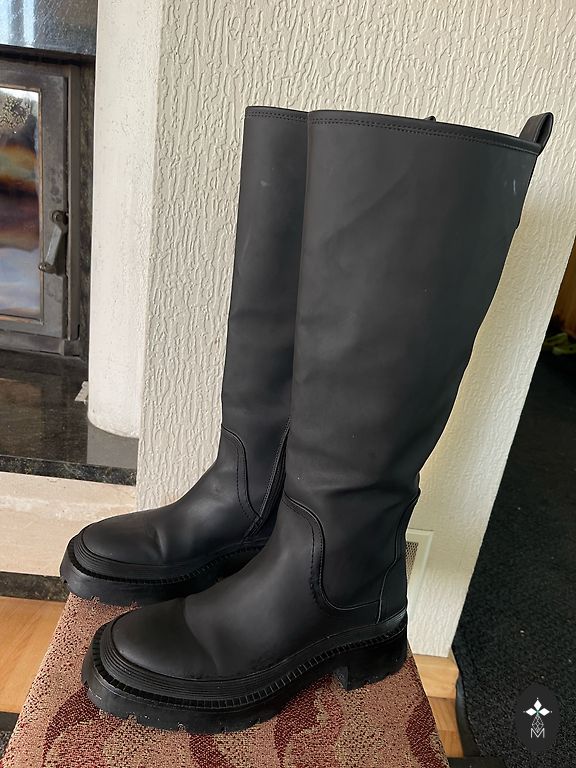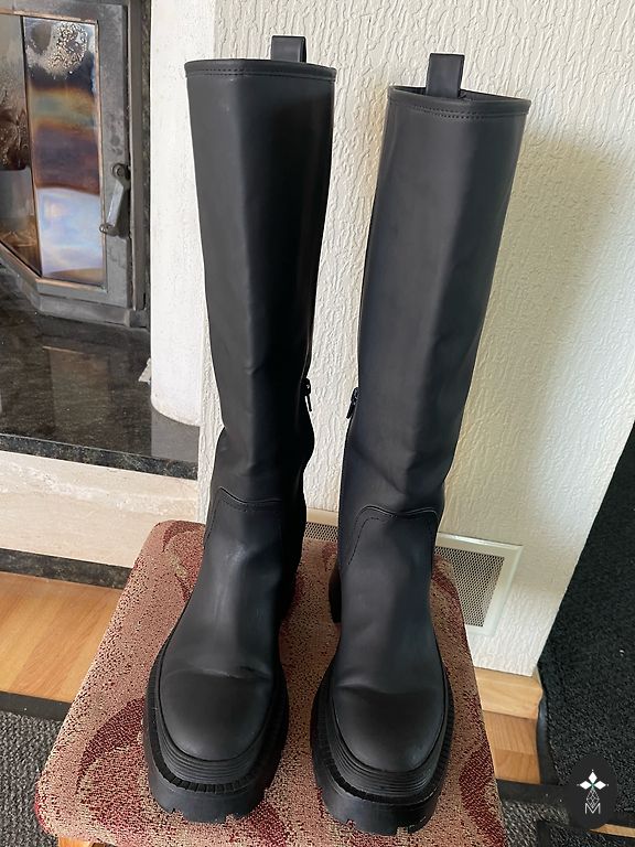 Длинные сапоги выше колена. Надеты хорошо, если два раза, без дефектов.