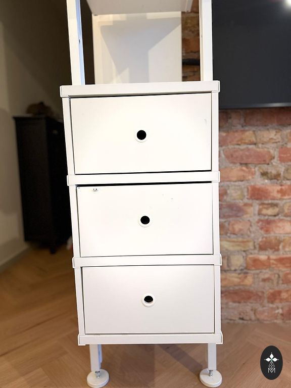 Yra 4 skyriai, galima įvairiai išdėstyti skyrius, jie yra išimami. Aukštis 93 cm, plotis 46 cm, ilgis 30 cm.