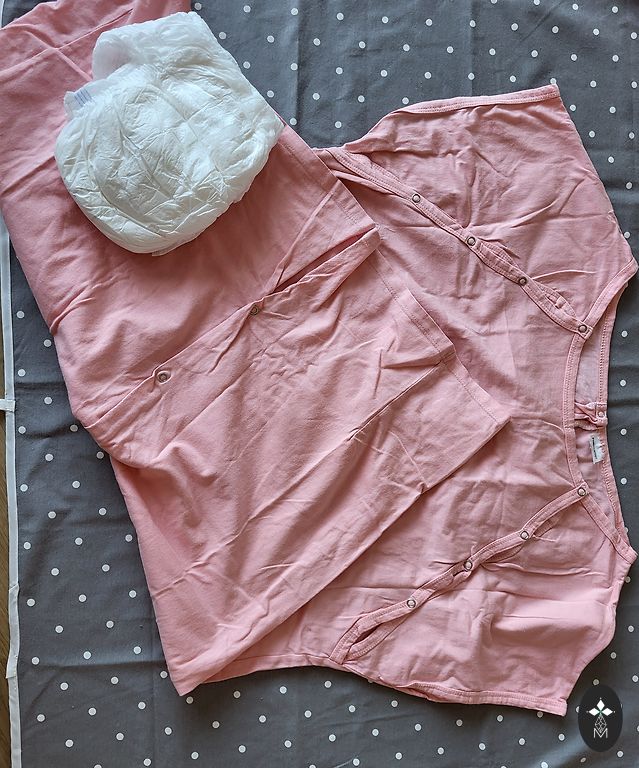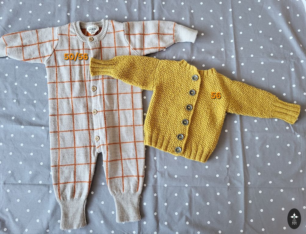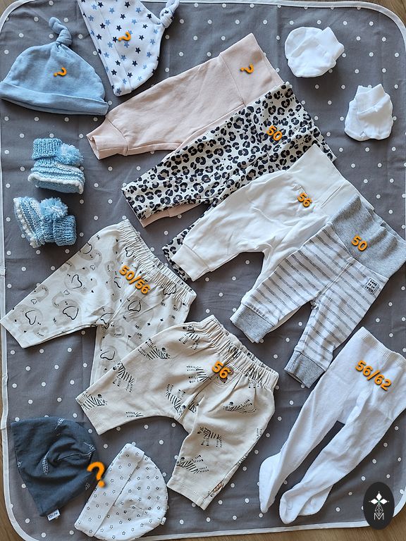 Maternity dress with snap button back and XXL feeding option (salmon color) + 1 pc. L diaper. The dress has a snap button defect at the back, but it doesn't affect usage. Everything is washed and fit our newborns (50/56). Mittens NEW! H&M white pants NEW! Wool boots NEW. Lindex leopard pants NEW! Animal pants NEW. Sinsay bodysuits like new. Size mismatch - fits 50/56. Hats fit newborns. Voksi 100% Merino bodysuit like NEW!