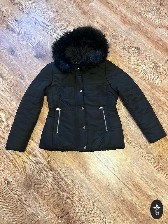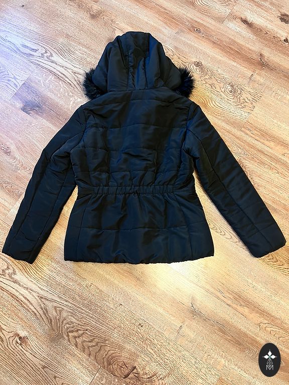 Striukė turi vidinę kišenę, susitraukia ties juosmeniu, dvigubą apykaklę. Defektų nerandu.