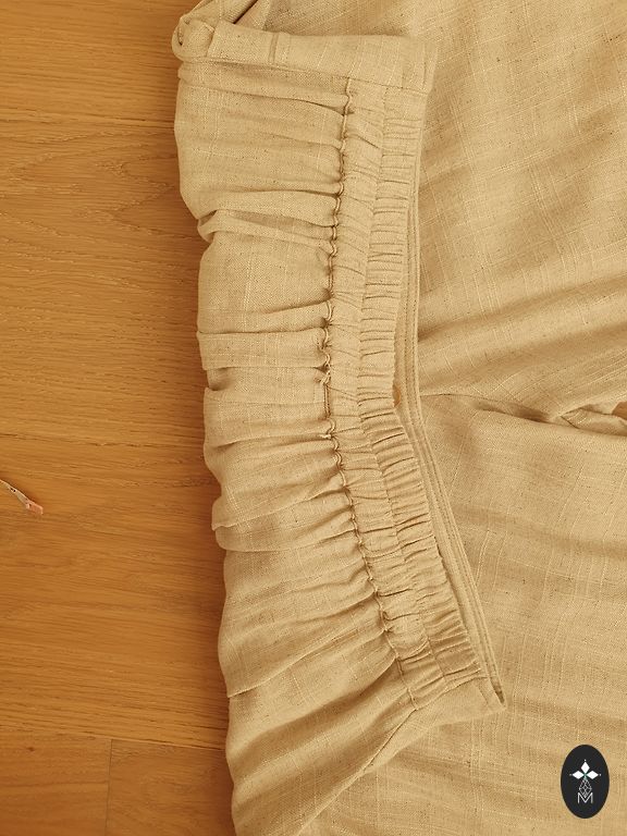 Seelik võib sobida jakiga või olla ostetud eraldi. Ees - lillemotiivid, taga - vertikaalne triip. "Kortsunud" kanga efekt