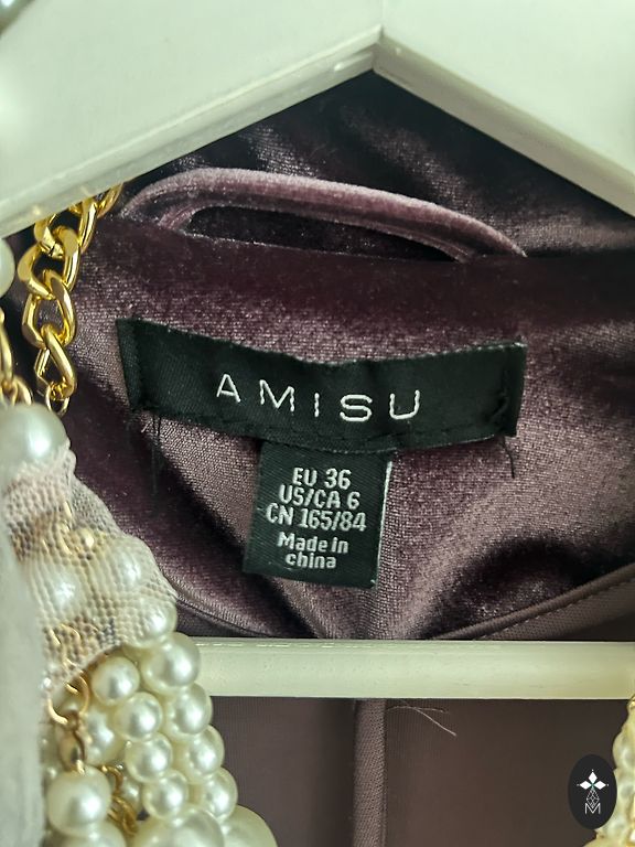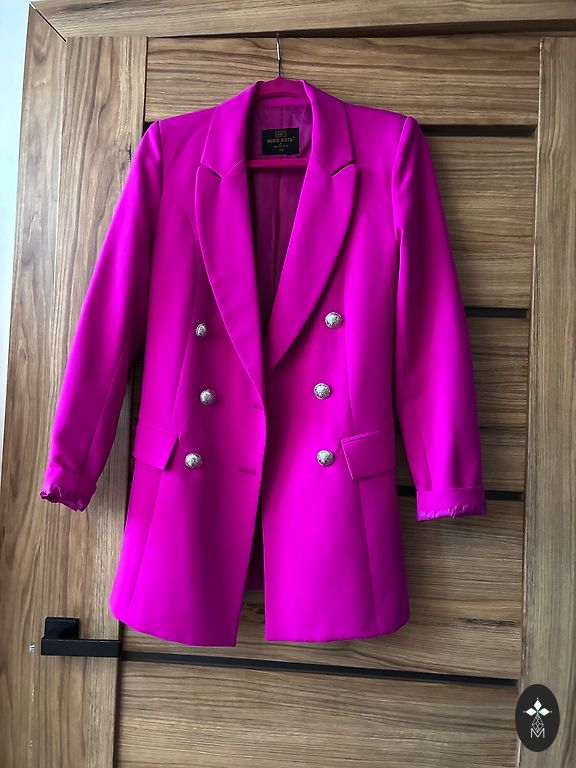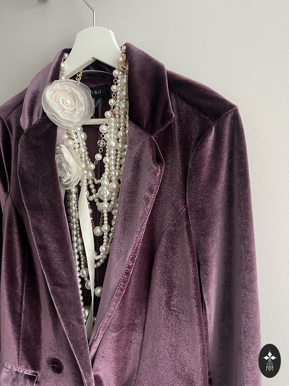 Aksominis švarkas, tamsiai violetinė spalva.