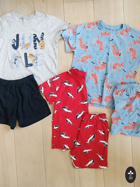 Shirts, sweater, pants, shorts, mostly from H&M, Next, and others.