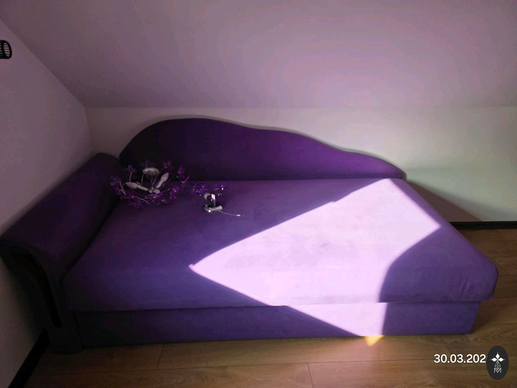 Balta vaikiška lova su čiužiniu. Dydis 164x84 cm, čiužinio dydis 160x80 cm, nuimamas užvalkalas su užtrauktuku. Ištraukiama dėžė po lova (trūksta vienos metalinės plokštelės, matoma nuotraukoje). Kaina 70€.