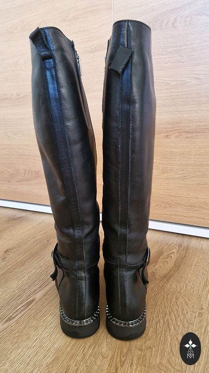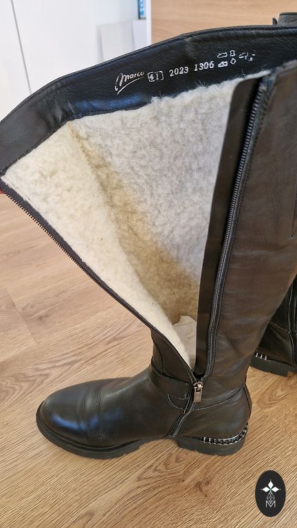 Несколько раз надетые сапоги из искусственной замши, понял, что они мне немного малы. Соответствуют размеру. Внутренняя стелька ~ 26,5 см. Хорошая, нескользящая подошва. Без дефектов.