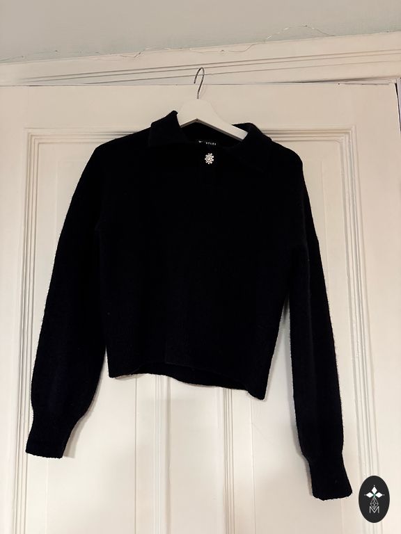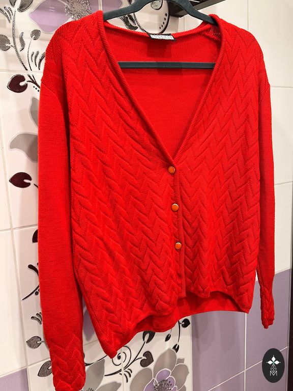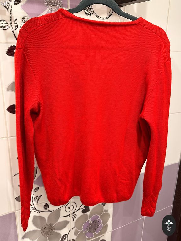 Цвет свитера такой же, как на первой фотографии (которая не сфотографирована). Подойдет для размеров S-M.