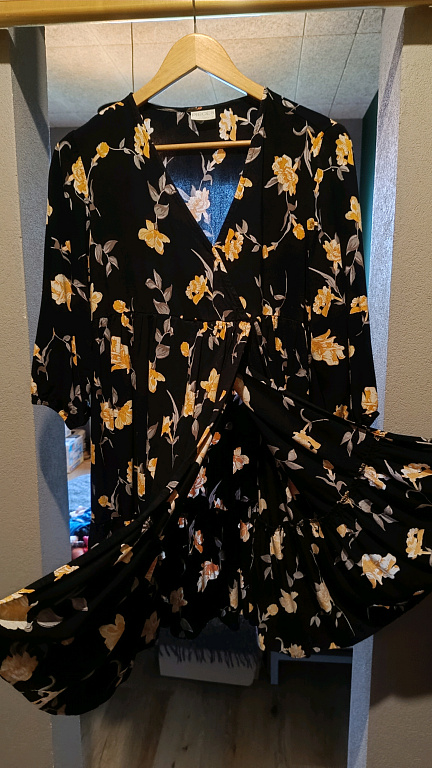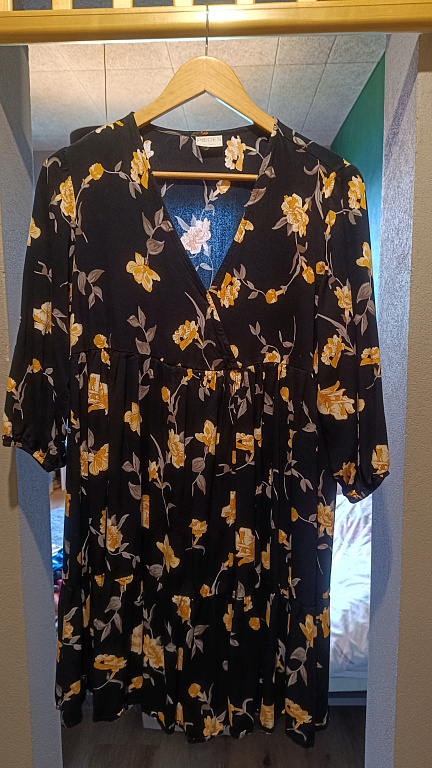 Super kleita. Derēs gan ikdienā, gan uz kādu pasākumu. Neburzās, super elastīga un ērta. Balta ar melniem punktiņiem.