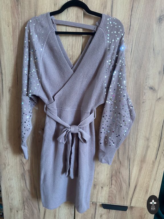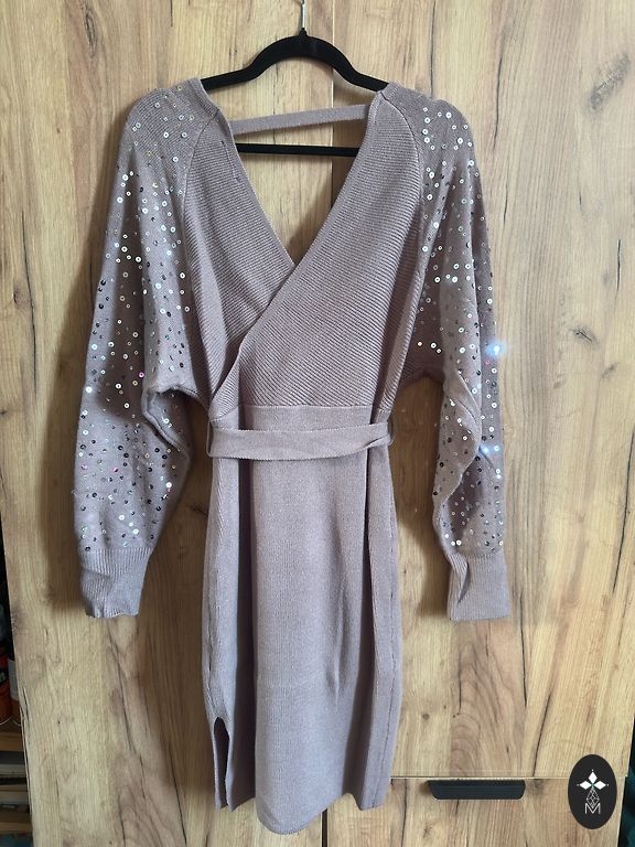 Labai gera tamsiai mėlyna suknelė idealiame stovyje, nesiglamžo. Medžiagos sudėtis gera: 70% viskozės, 28% poliesterio ir 2% likros. Suknelės ilgis yra 102 cm, krūtinės plotis 45 cm, klubų plotis - 46 cm, elastinga. Suknelė lengva, su dviem kišenėmis šonuose, šoninis užtrauktukas ir ilgas diržas apie 3 metrus. Suknelė mažai naudota, nes pasikeitė dydis. Omniva - 2 eurai.