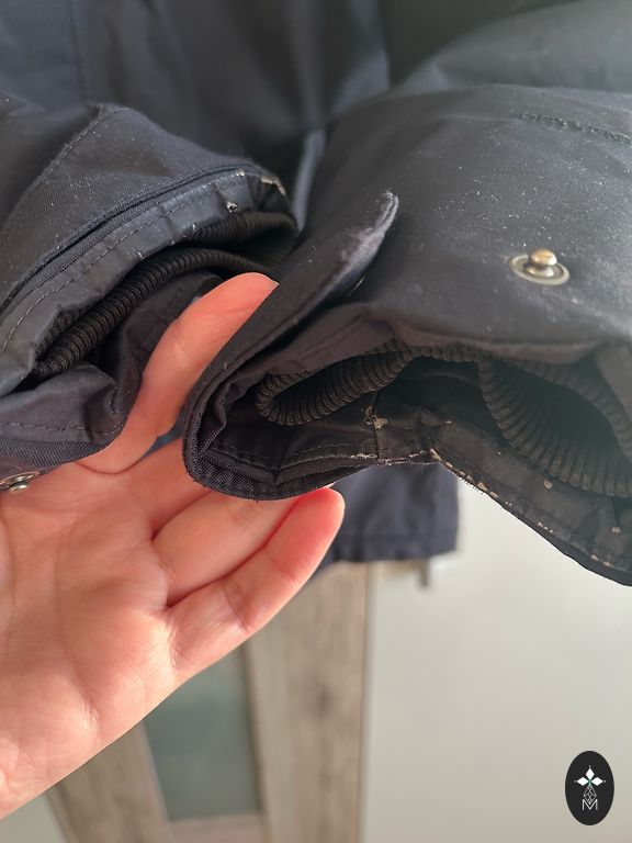 Naudotas žieminės striukės, labai šiltos ir kokybiškos, tačiau pažasties zonoje yra skylė, trūkumas yra taisomas.