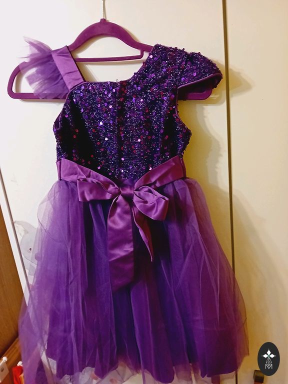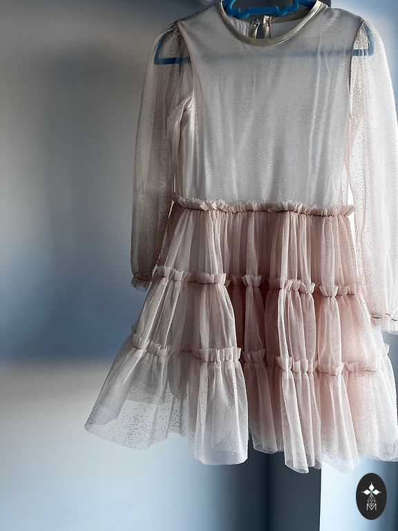 A dress for 7-8-year-olds, with a special material that will draw attention from others.