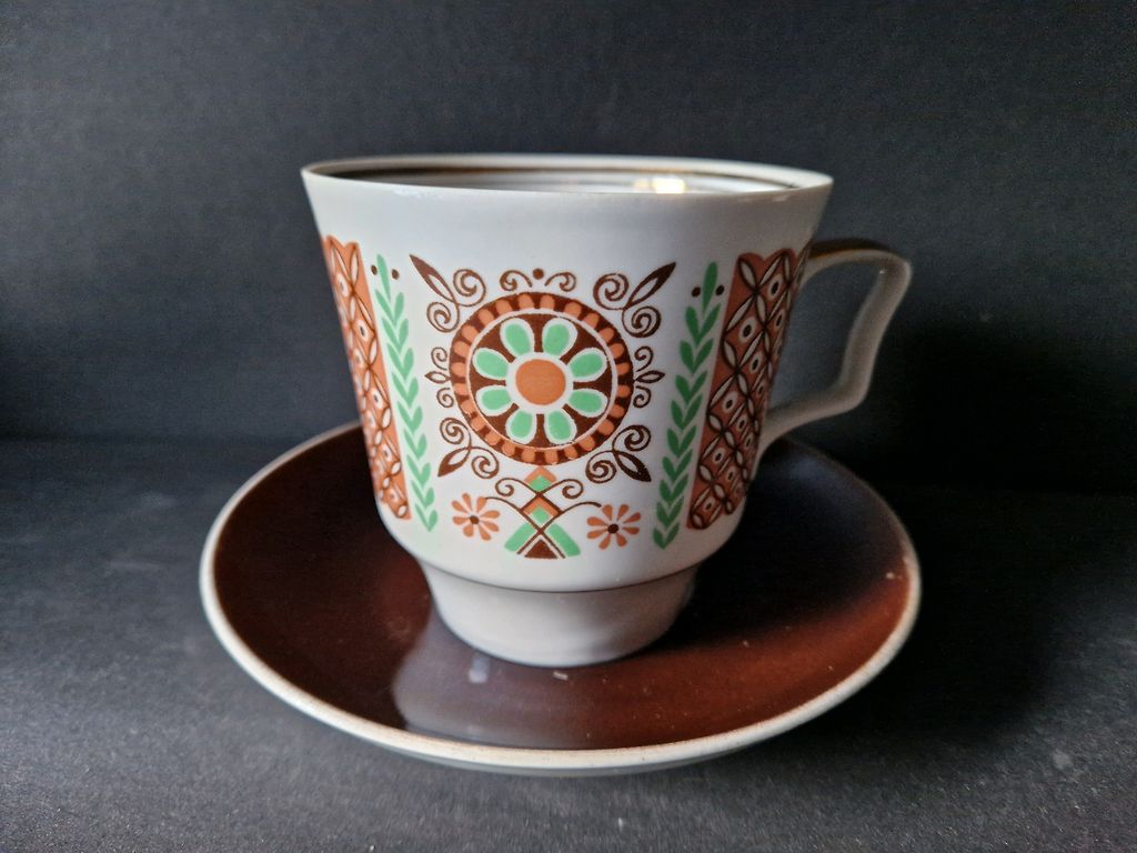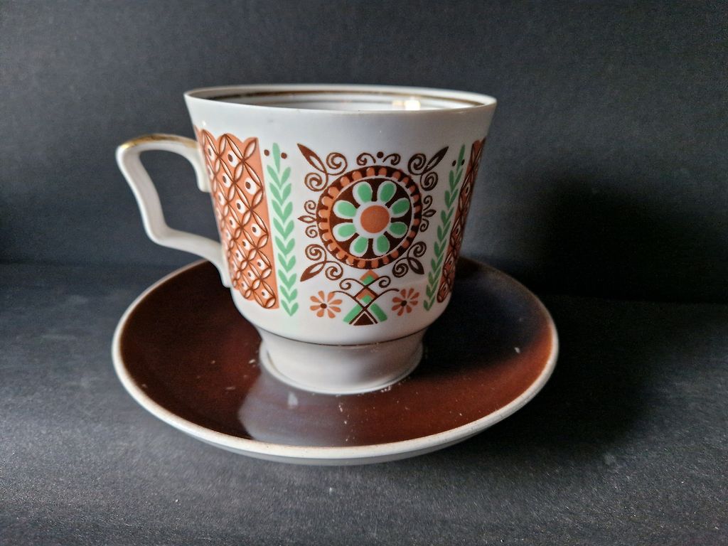 Кофейный сервиз,все по шесть.На одной тарелочке есть маленький скол.Цена указана вместе с доставкой.
