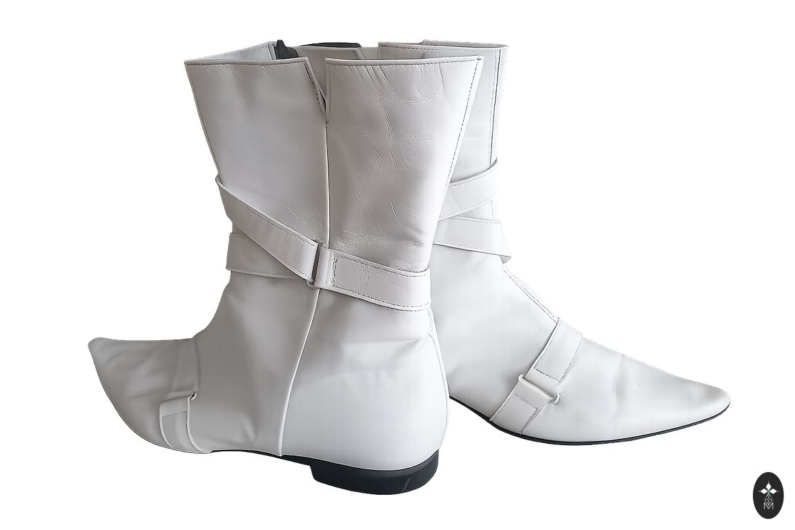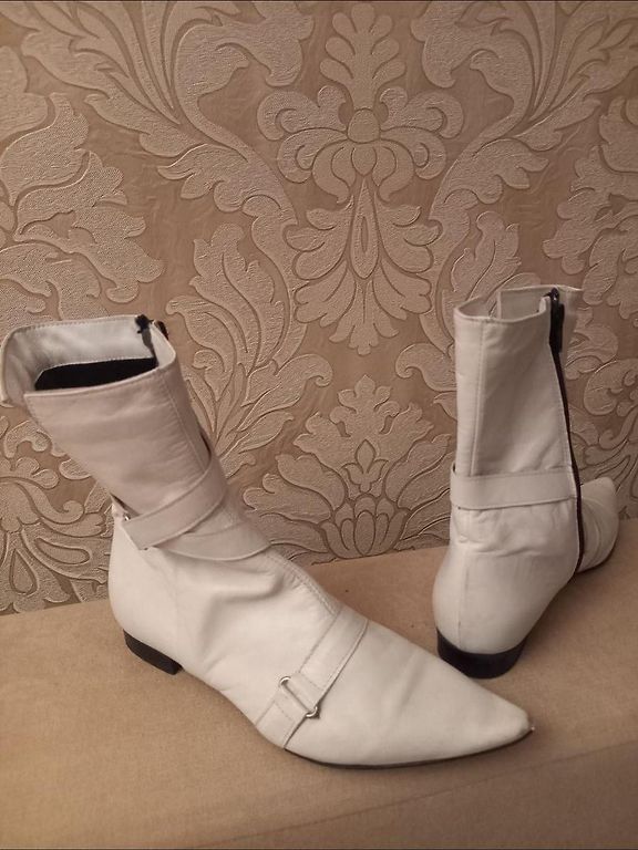 Кожаные белые полусапожки на платформе. Единственный недостаток - местами потертая краска.