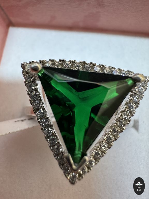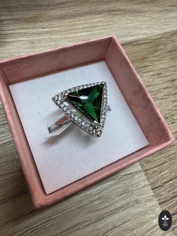 Красивое кольцо из серебра 925 пробы и золота 375 пробы с большим и маленькими фианитами. Размер: 17.5