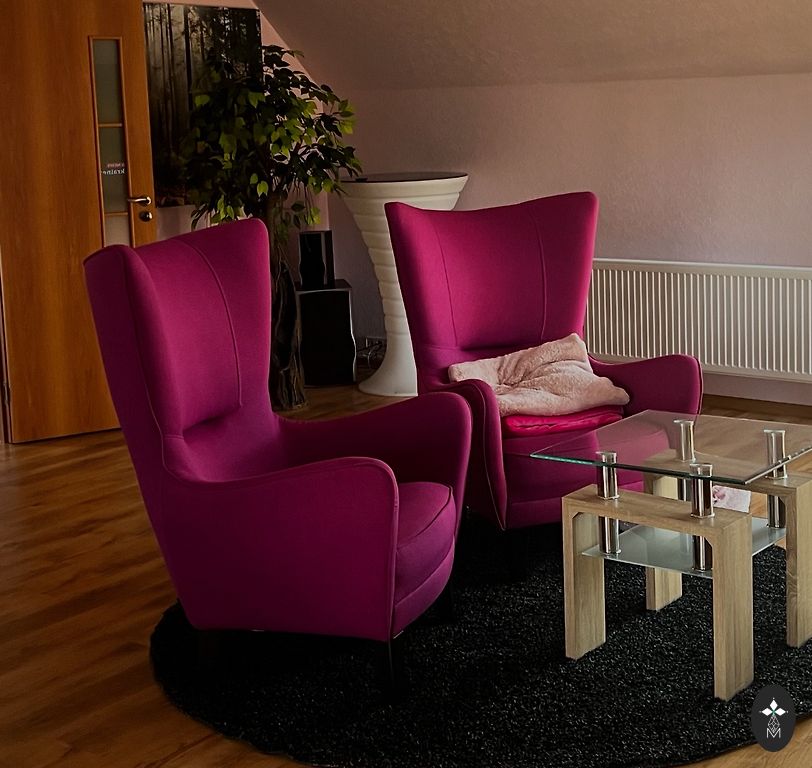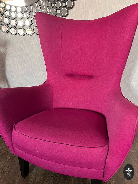 Patogi kėdė, skirta naudoti prie rašomojo stalo, su reguliuojamu aukščiu, ratukais. Minkštas aksominis kėdės audinys.