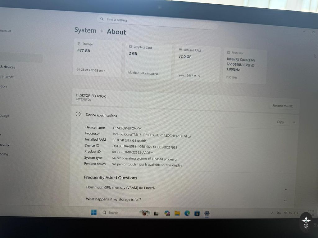 Procesorius: intel i5-12450H 2.0Ghz