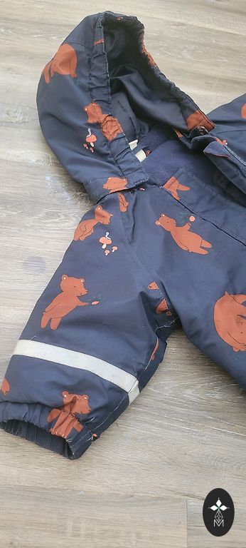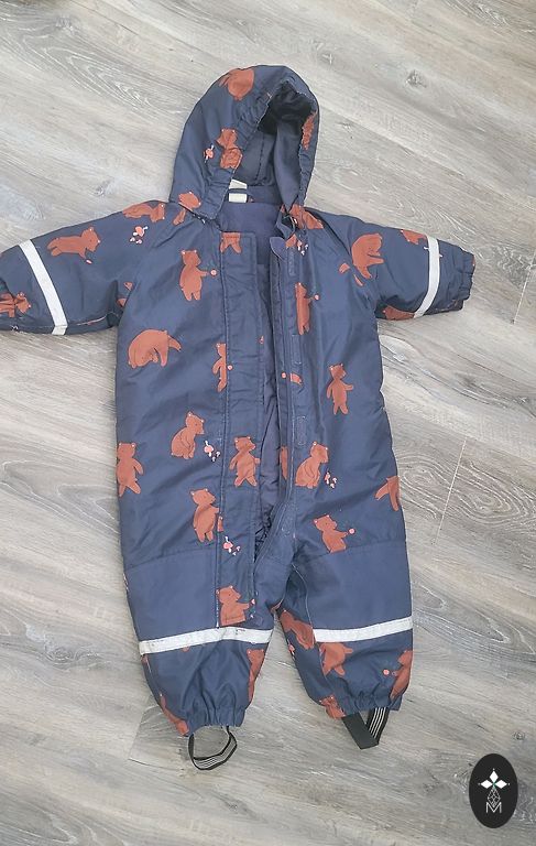 Fleece jumpsuit, bought new. Only used in a stroller.