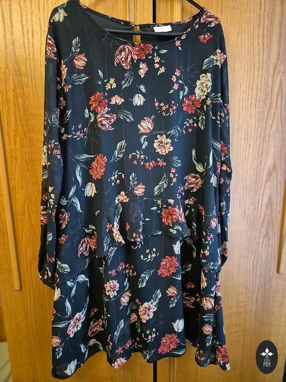 Beautiful, flowing airy dress. Black slip underneath. Length 85cm.