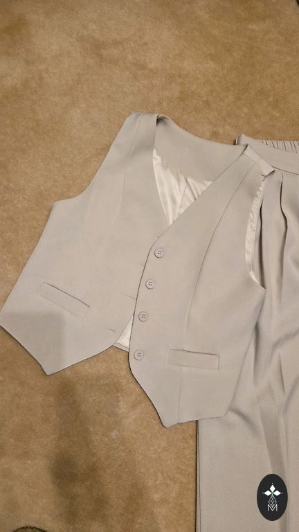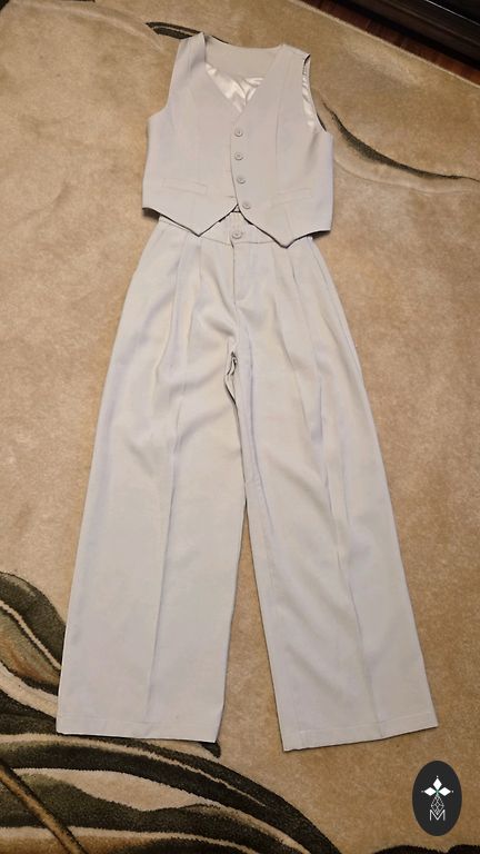 Свободный, оверсайз комплект - топ (можно использовать как жилет), брюки, жакет. Для подробностей о размерах пишите в личные сообщения.