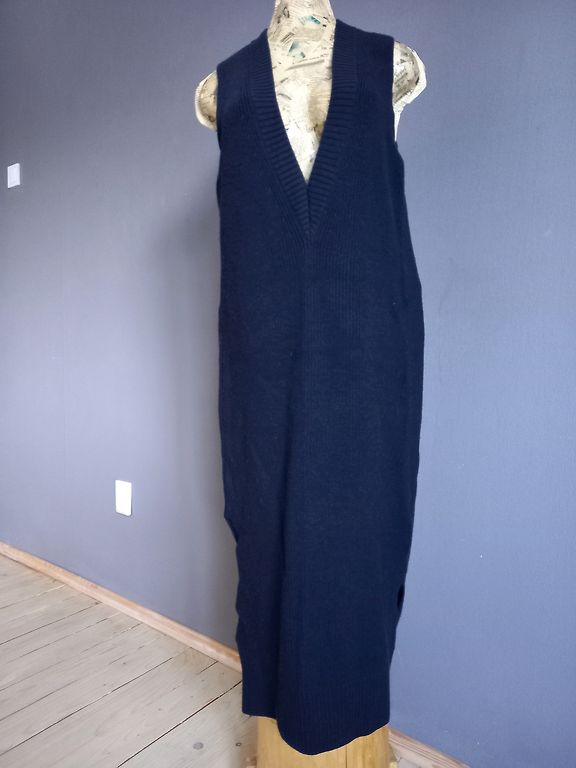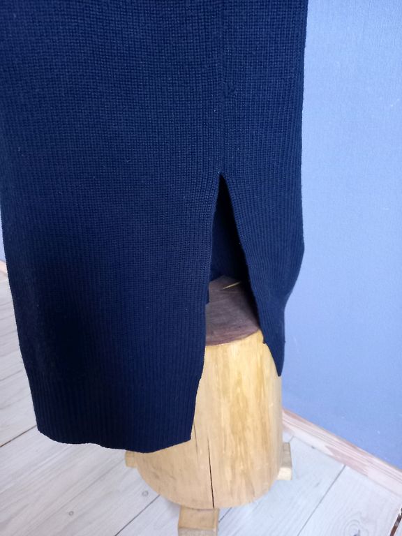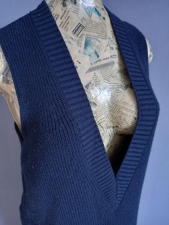 90% cotton. Size S, fits M-L size. I wore it in size 40. Very unusual texture and stylish insert.
