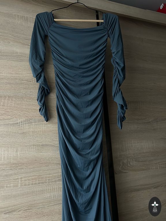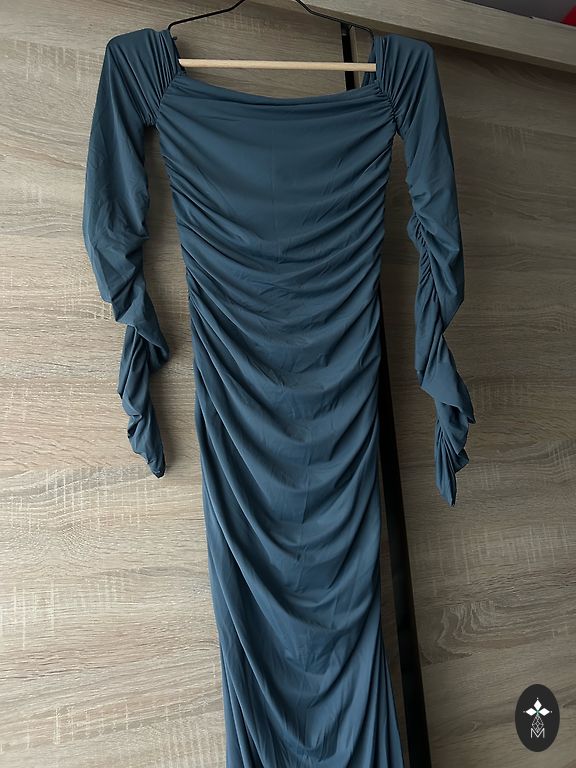 Trumpa suknelė su iškirpte ir surišamu elementu ant nugaros. Labai patogi ir lengva. Dėvėta tik kelis kartus, bet parduodu, nes tapo per trumpa.