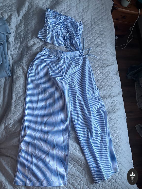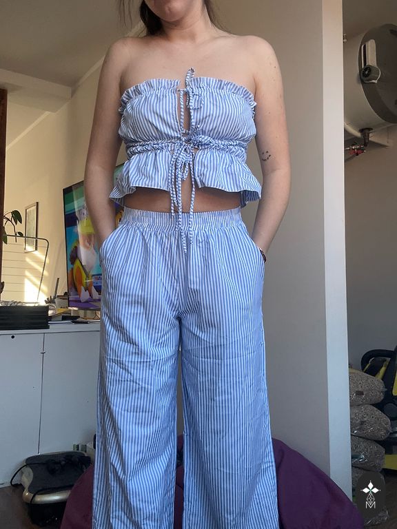 Vasaros 100% viskozės kostiumas. Šortai su aukštu juosmeniu, trumpa palaidinė.