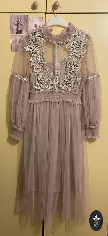 Платье надевалось несколько раз, на мой рост 170 см оно ниже колена. Передняя часть полностью открывается.