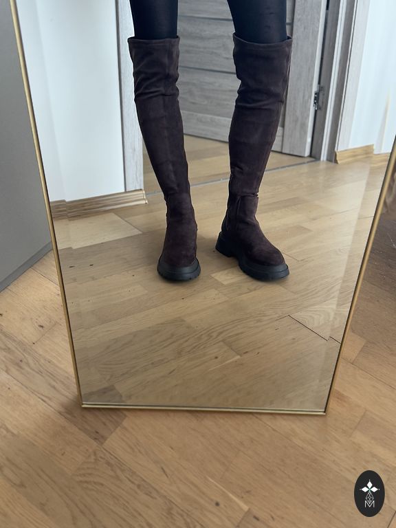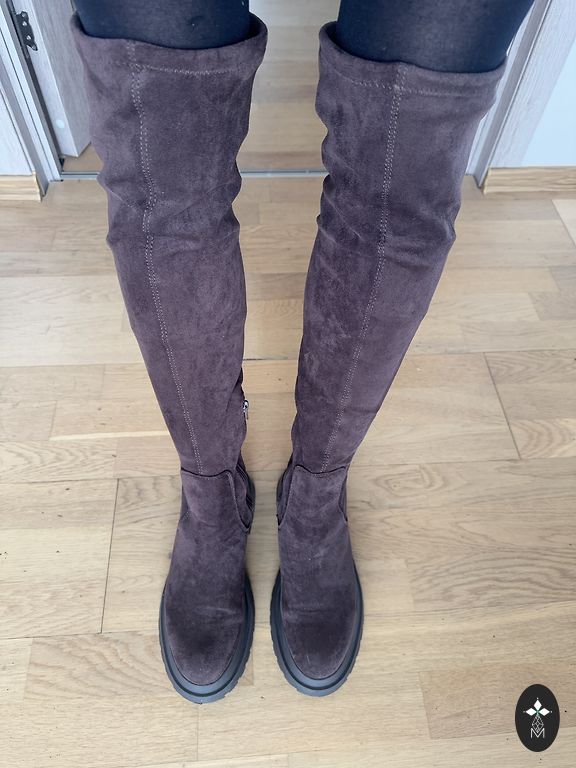 Õhukes pikad nahksaapad, kõrgus 42 cm, sääre laius ülaosas 20 cm