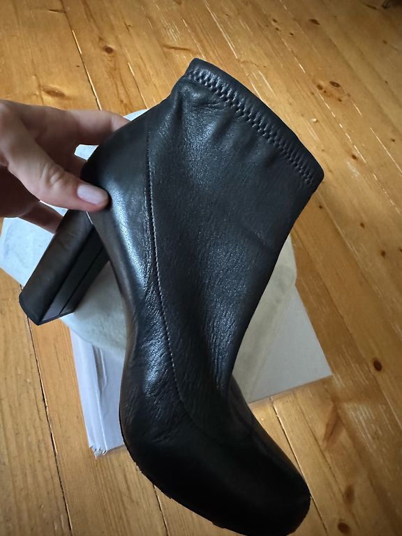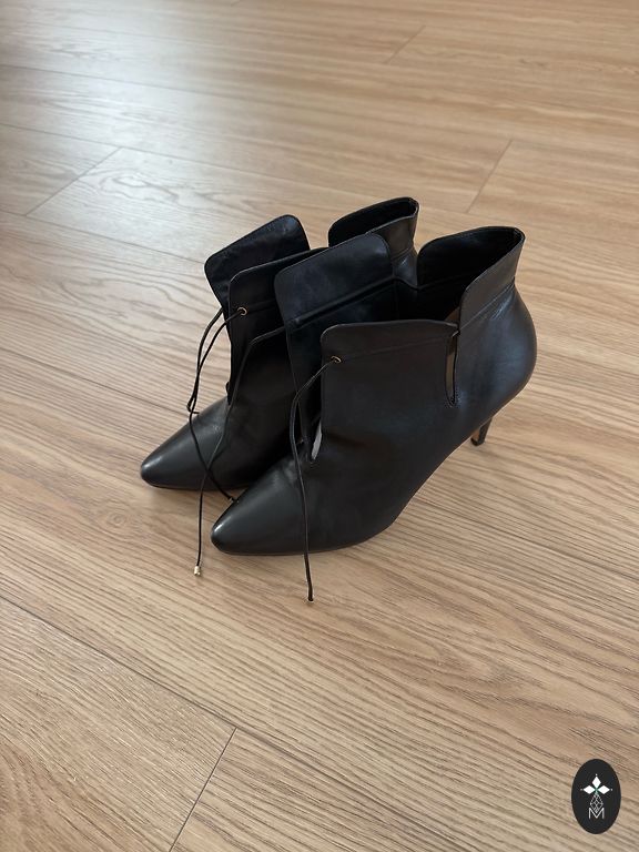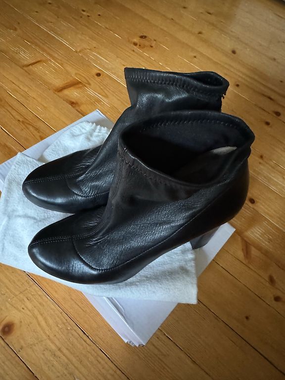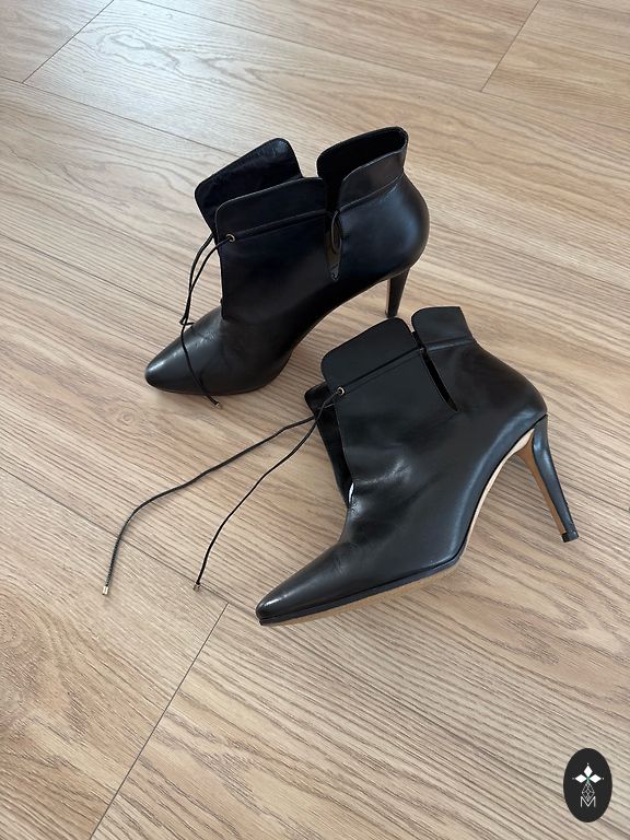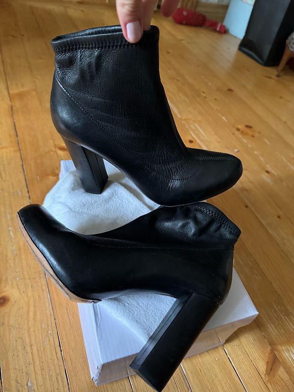 Melni ādas zābaki 39.izm.Iekšpēda 25,3cm.Iekšpusē neliels siltinājums.Aizdare ar rāvējslēdzēju.Purngalos nēsāšanas pazīmes.