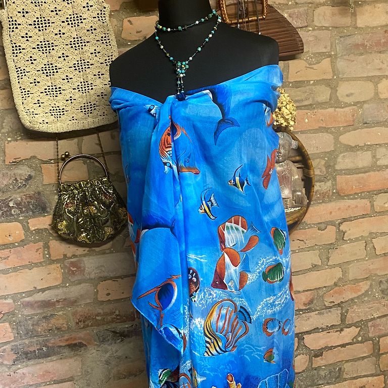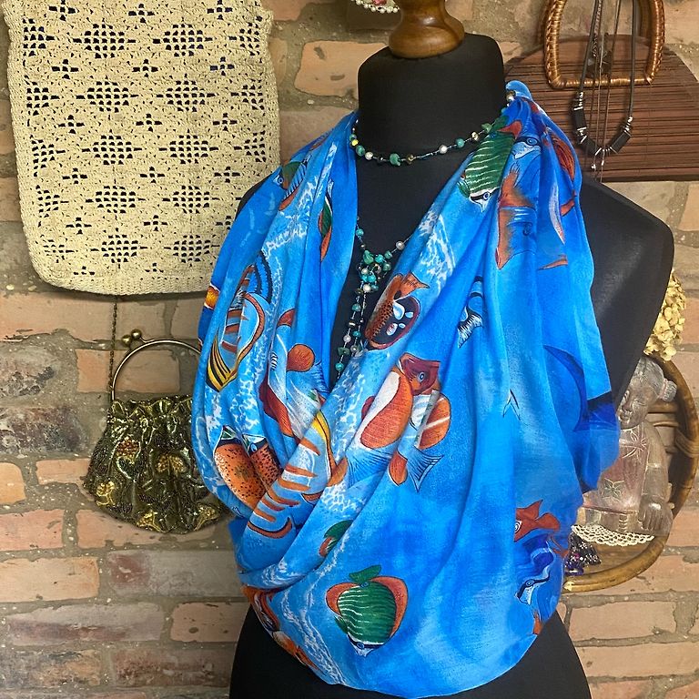 Komplektā divas vieglas, garas šalles dzeltenā un zilā krāsā. Lieliski piemērotas pavasarim, vasarai vai rudenim – var nēsāt gan kā šalli, gan lakatu.