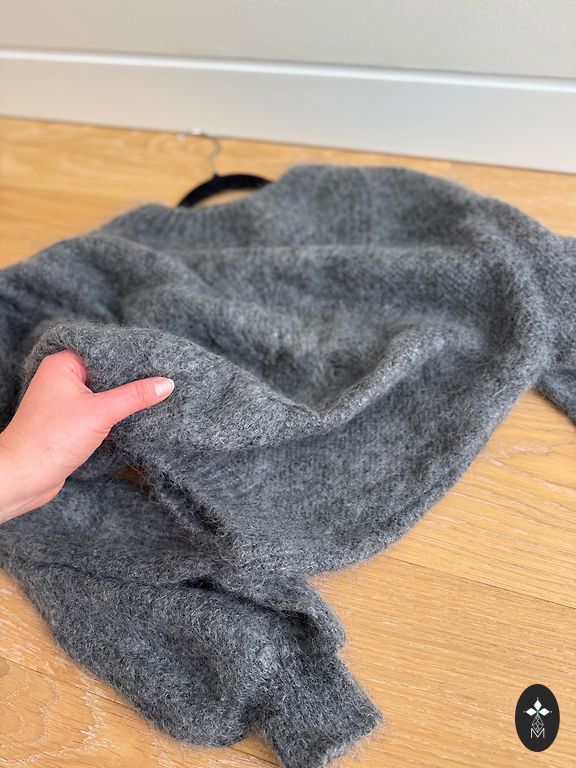 Garums 61 cm, platums 63. Nav biezs, ļoti patīkams audums.