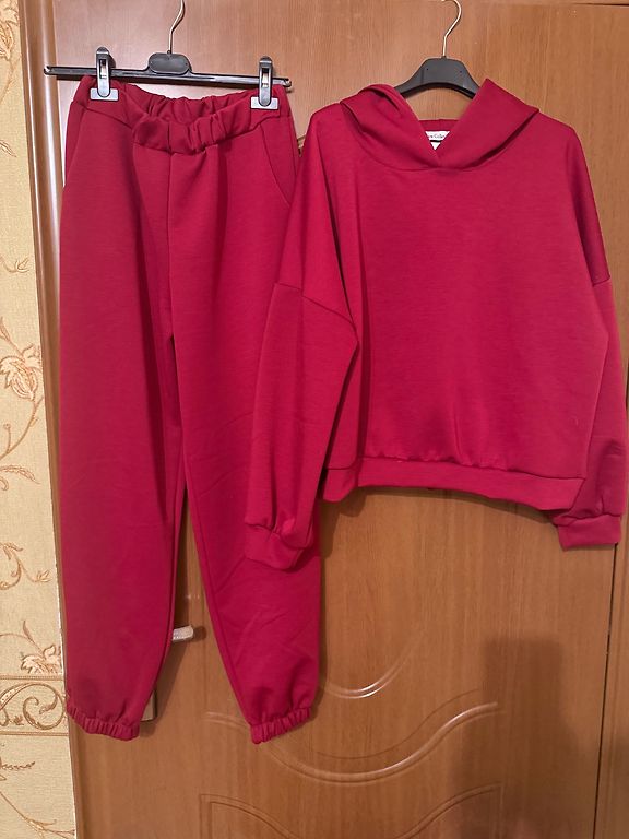 Naujas laisvalaikio kostiumas (Italy) "taup" spalvos. Dydžiai: kelnės - ilgis 104 cm, liemuo 80-92 cm, klubai 140 cm; viršus - krūtinė 130 cm, ilgis 67 cm. Medžiaga - viskozė ir elastanas.